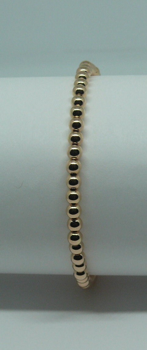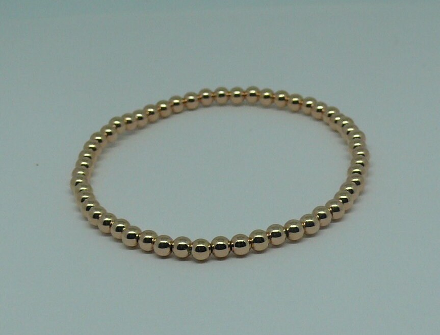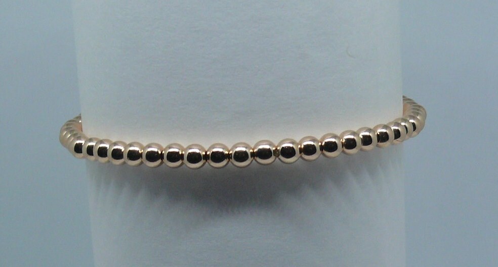 Sku # 6929Rose Gold Filled Beaded Bracelet Rose Gold Filled Bead MM Size = 4 mmShape of Bead = Round Color of Beads = RoseGold Filled = 14/20 Total Bracelet Length in Inches = 7.5" (No lock it's strung on a stretchy Wire)Made in USA