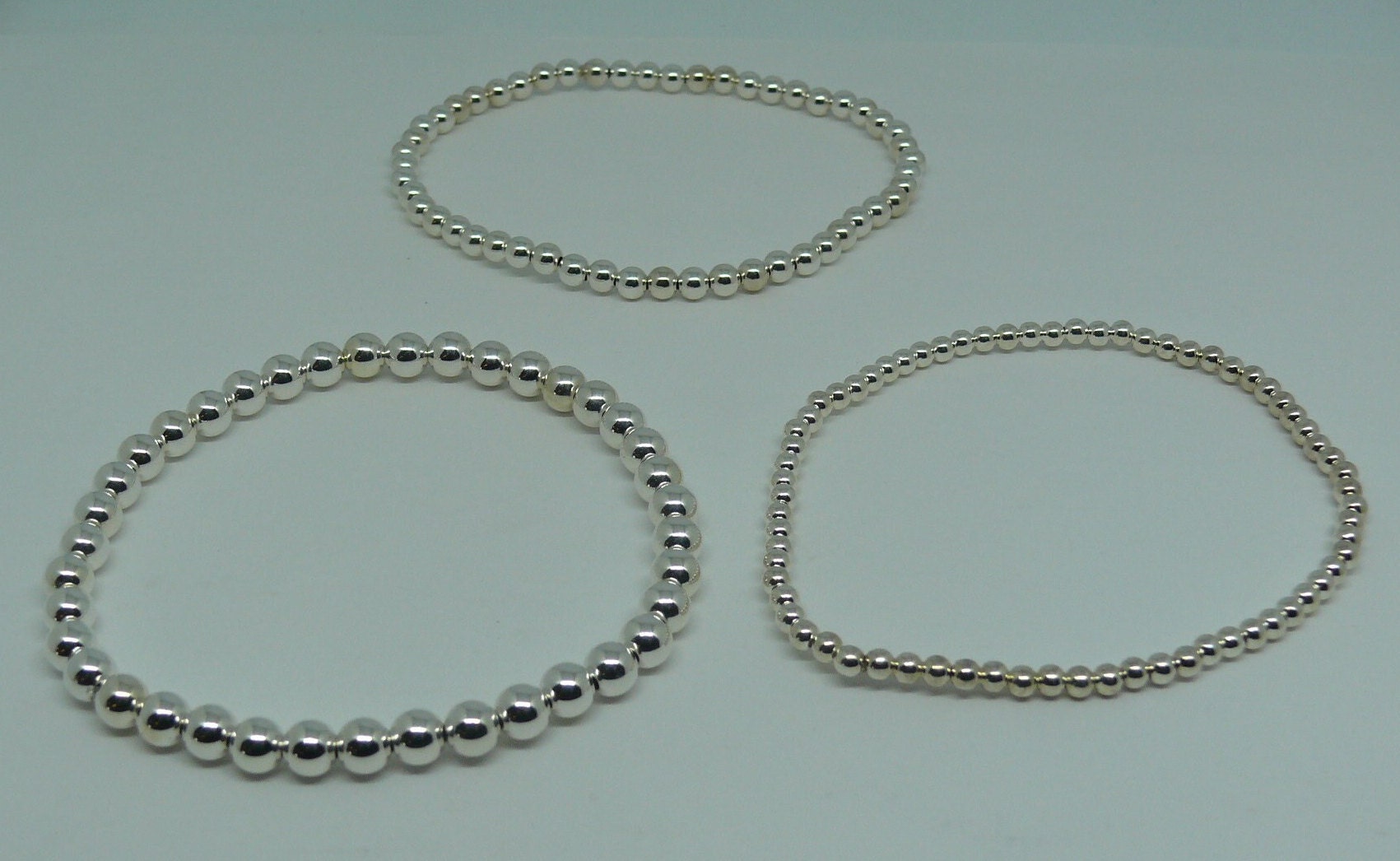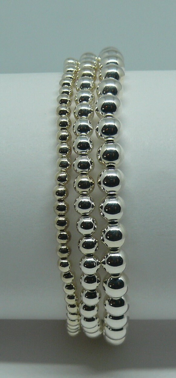 Sterling Silver Beaded Triple Stackable Bracelet
