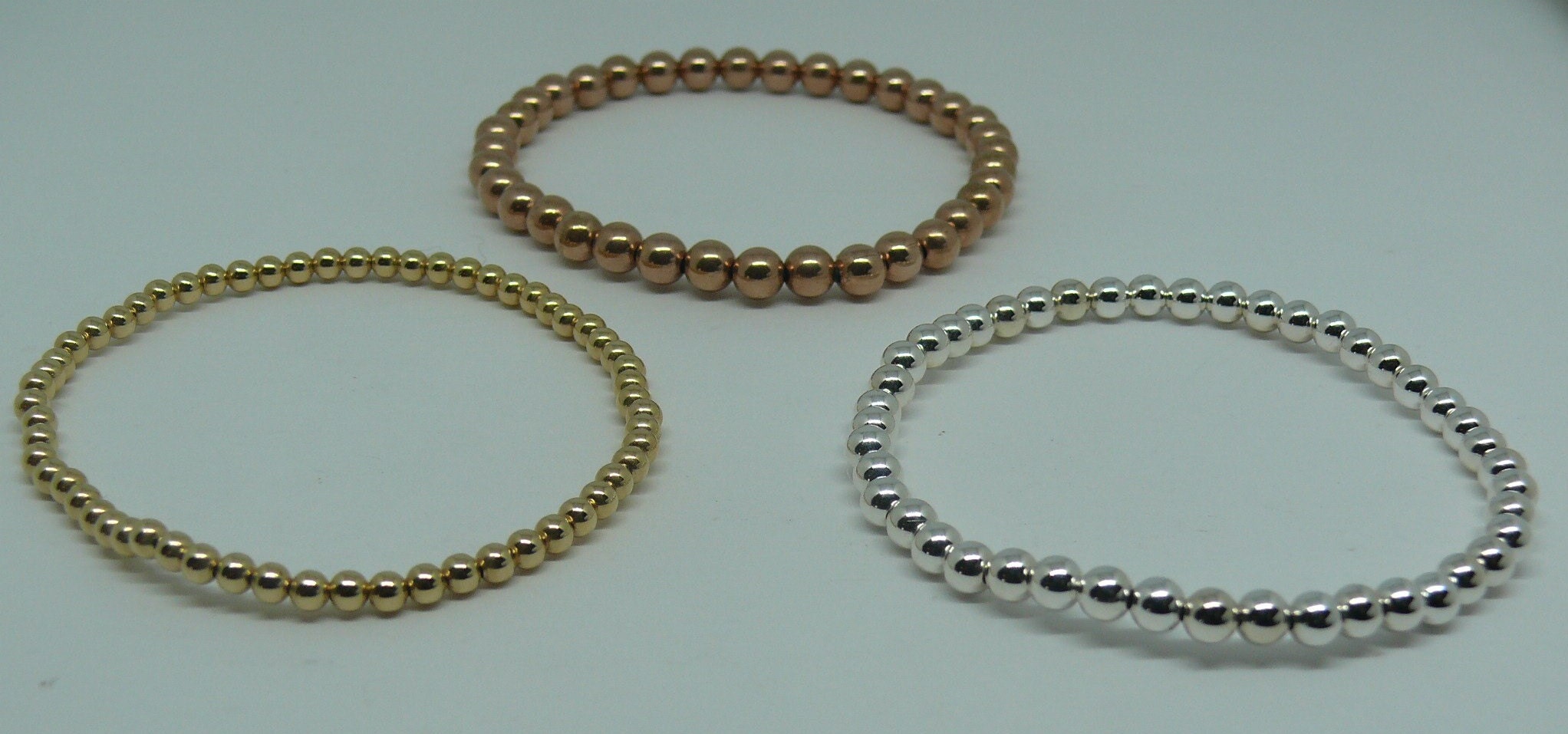 Yellow & Pink Gold Filled & Silver Beaded Triple Stackable Bracelet