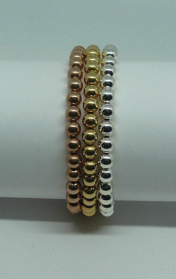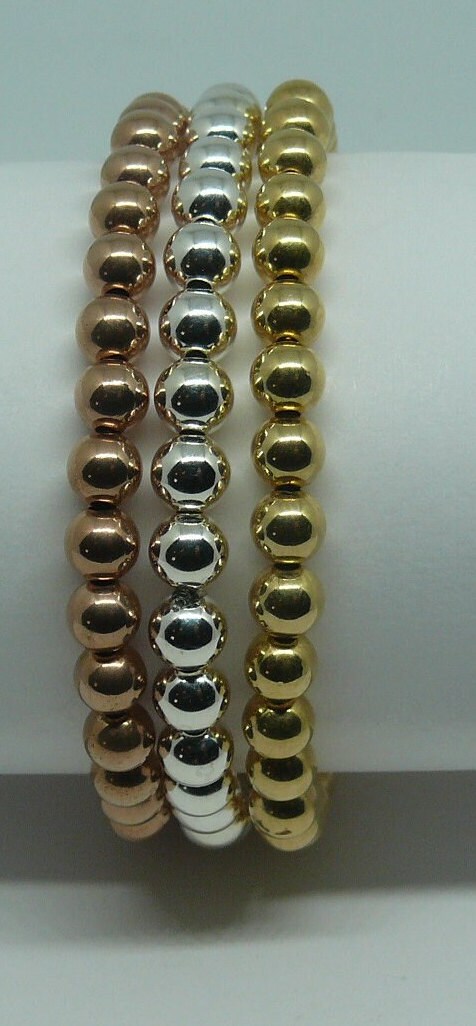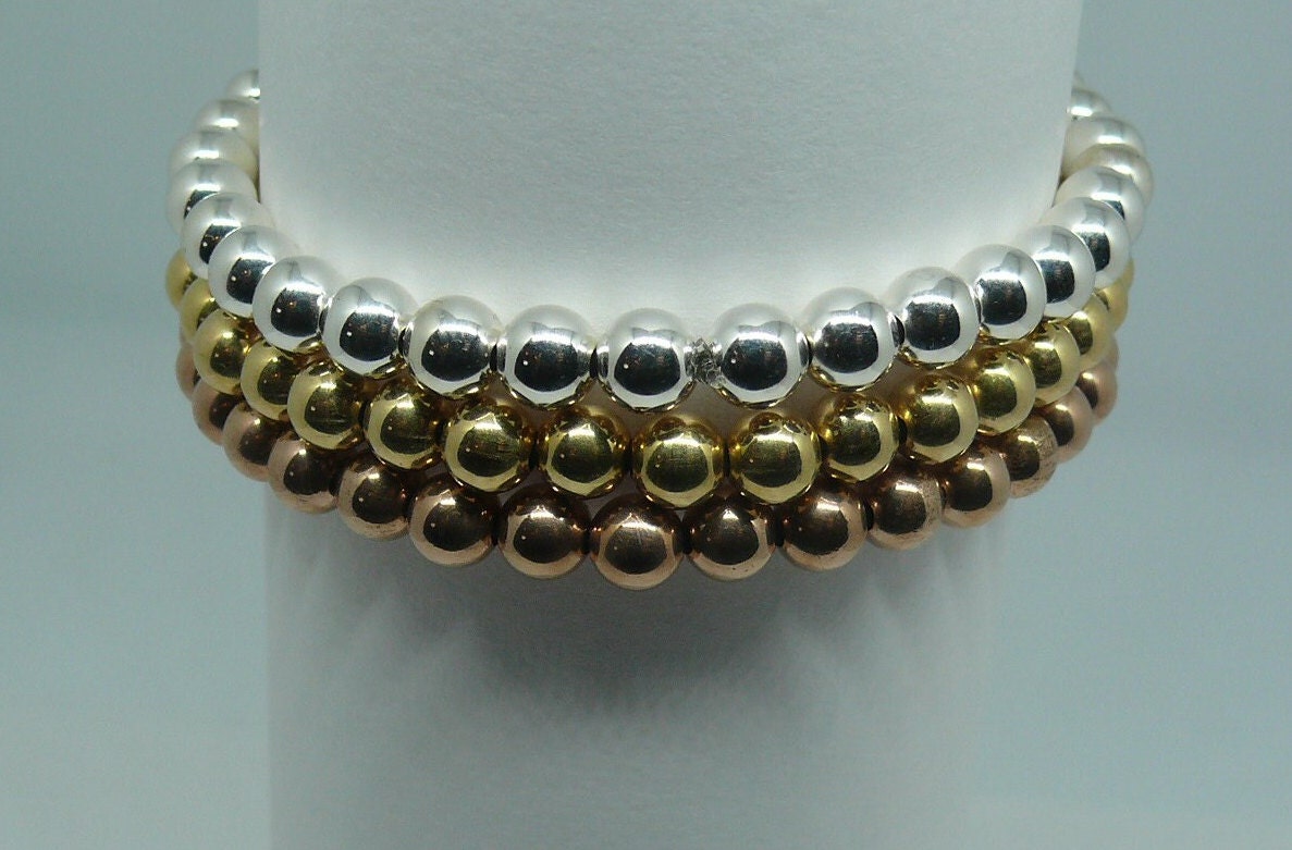 Yellow & Pink Gold Filled & Silver Beaded Triple Stackable Bracelet