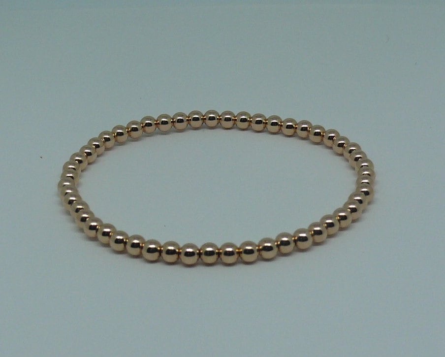 Sku # 6928Rose Gold Filled Beaded Bracelet Rose Gold Filled Bead MM Size = 4 mmShape of Bead = Round Color of Beads = RoseGold Filled = 14/20 Total Bracelet Length in Inches = 7" (No lock it's strung on a stretchy Wire)Made in USA