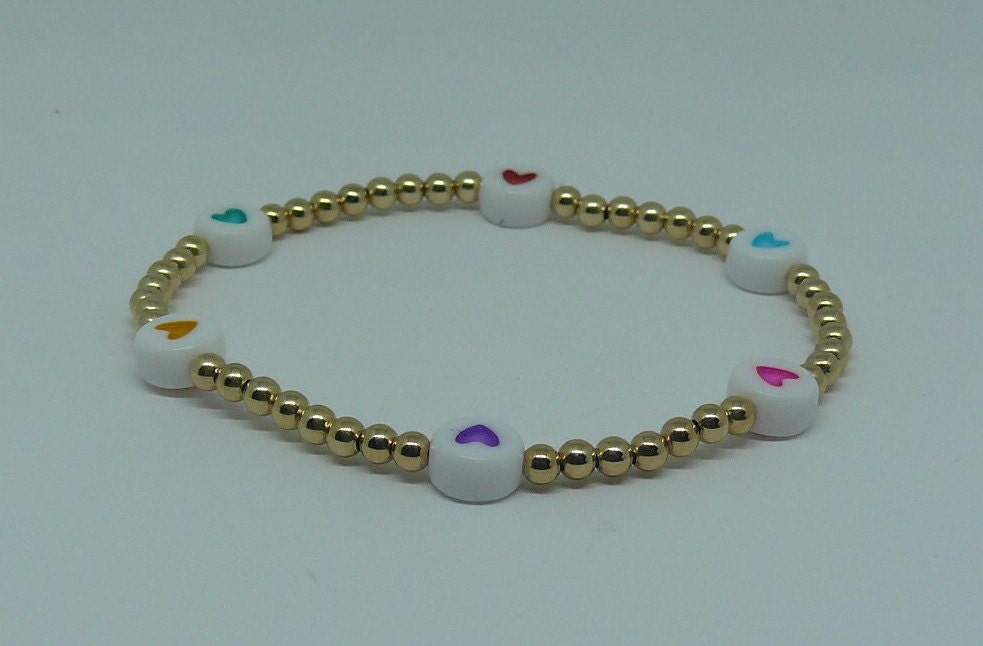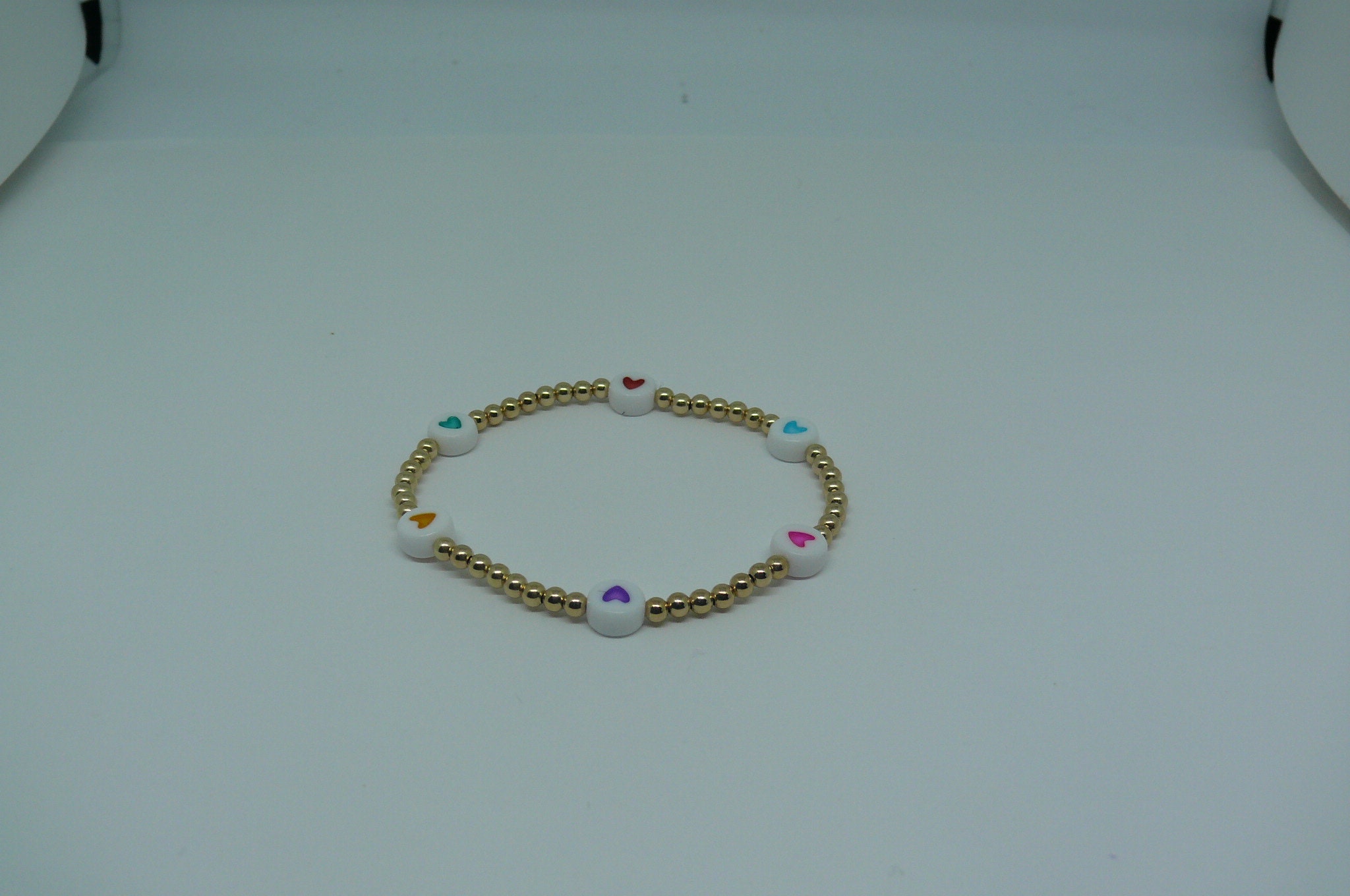 Gold Filled Beaded Bracelet with Multicolor Heart Beads