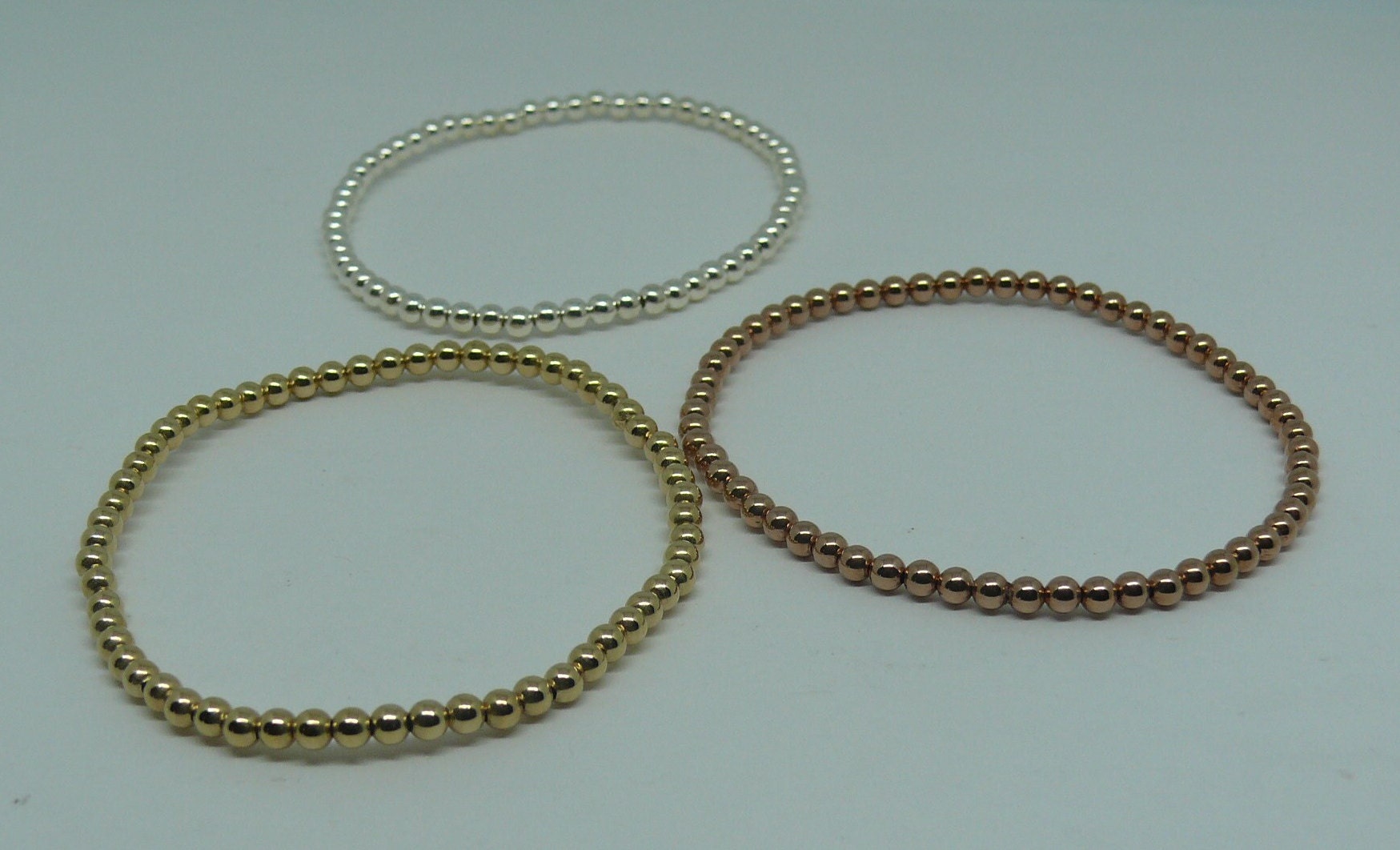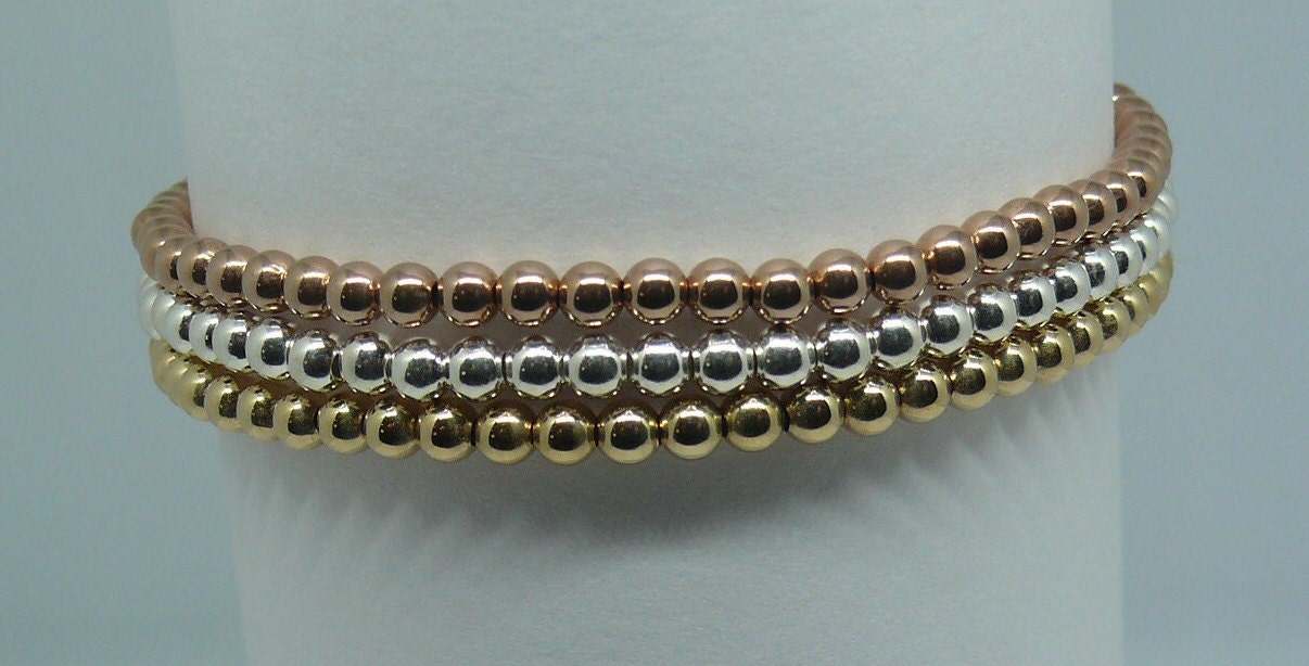Yellow & Pink Gold Filled & Silver Beaded Triple Stackable Bracelet