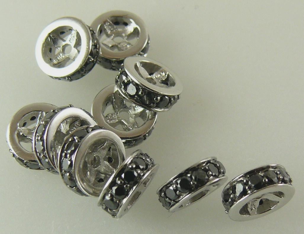 Sku # C655Black Diamond RondelTotal Number of Diamonds = 12Total Diamond Weight = 0.28ctGold = 18k White GoldTotal Gram Weight Including Stone = 0.9 GramsLength in MM = 8MM Width in MM = 2.99 MM